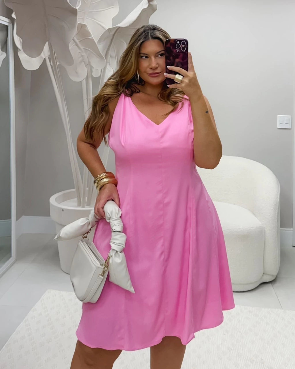 Tecido: Viscose leve com toque macio e caimento fluido Detalhes: Modelagem midi com decote V profundo...