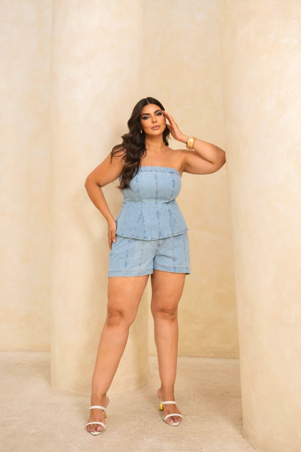 Conjunto Blusa Um Ombro Só Short Casual Sofisticado