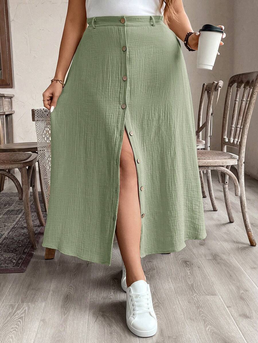 Saia Feminina de Algodão Comprimento Médio com Botões - Rossela