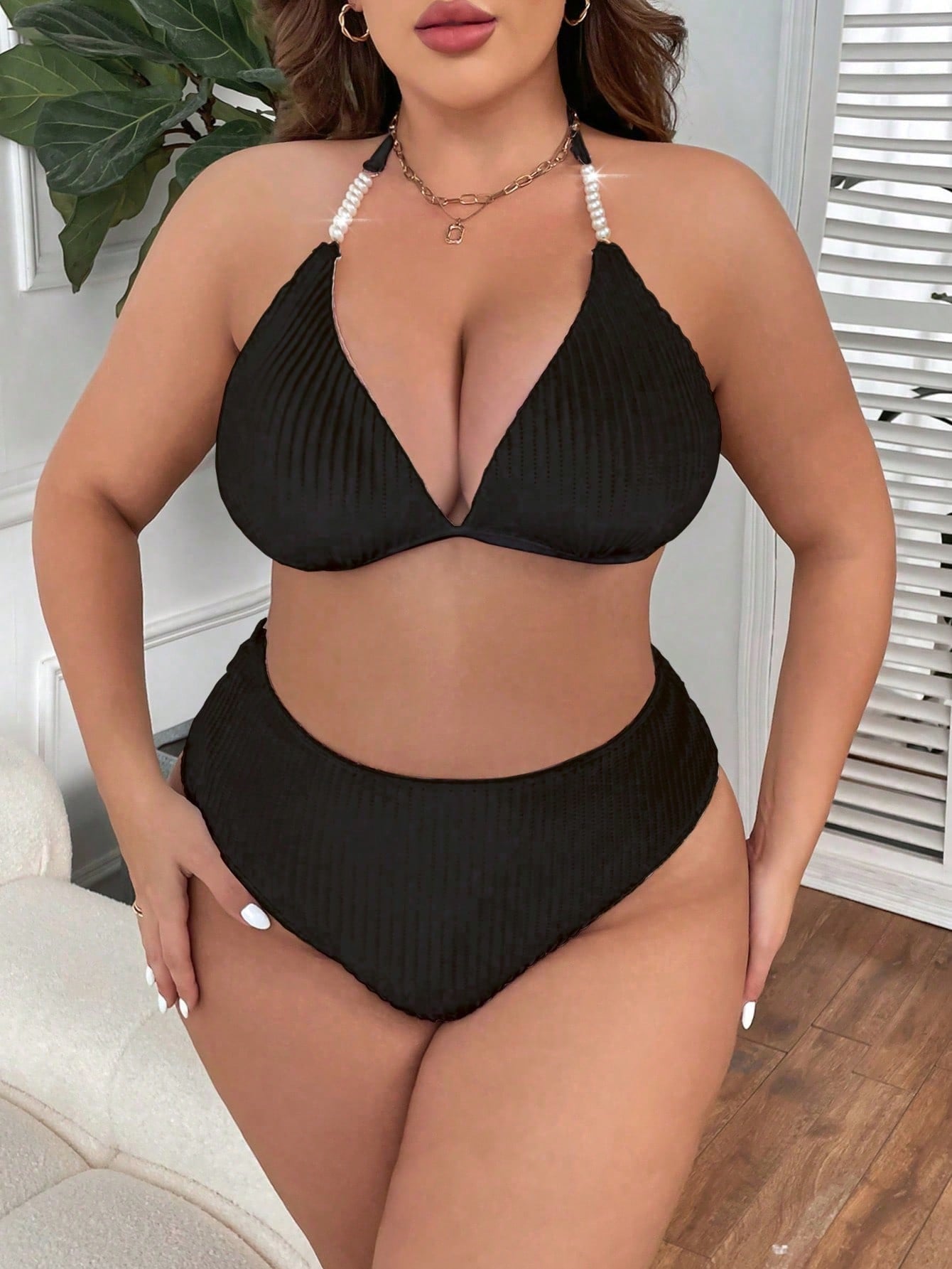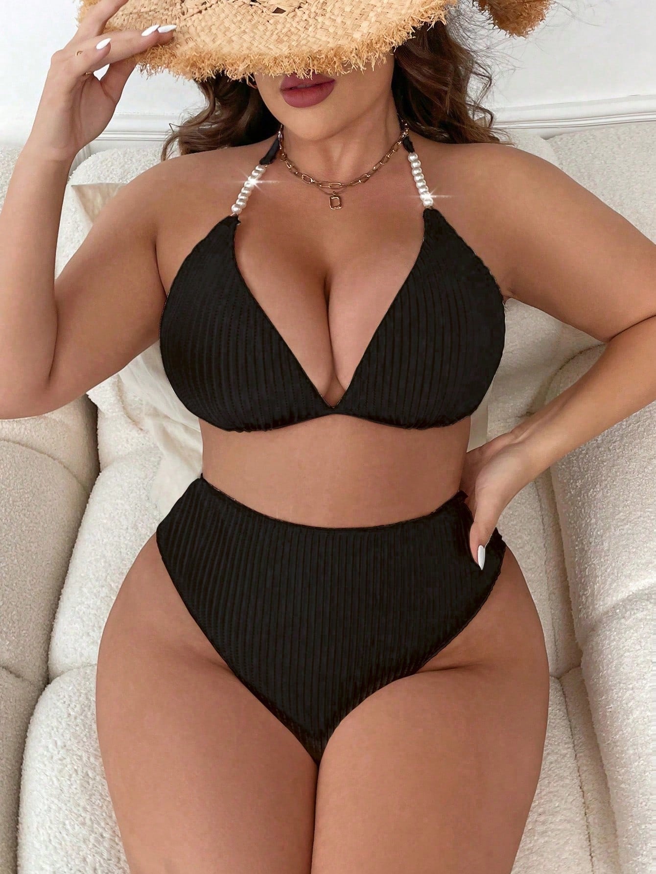 Biquíni Feminino com Textura Canelada e Detalhe com pérolas