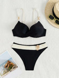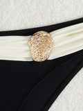 O Biquíni Liora une elegância e conforto em um design atemporal que valoriza as curvas com delicadeza. O top estruturado com bojo leve e torção frontal traz um toque sofisticado, enquanto as alças com detalhes dourados acrescentam brilho na medida certa. A calcinha de cintura alta com faixa drapeada e aplique metálico adiciona um charme refinado — ideal para momentos de sol com estilo e confiança.
