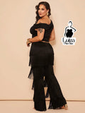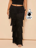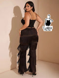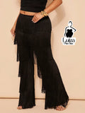 Calça Cintura Alta Franjas Camadas Estilo Fashion Plus Size