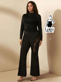 Calça Flare Cintura Alta Recortes Em Renda Plus Size