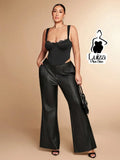 Calça Flare Efeito Couro Cintura Alta Elegante Plus Size