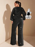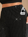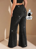 Calça Pantalona Brilho Listrada Estilo Festivo Plus Size