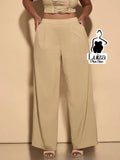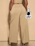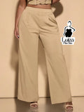 Calça Pantalona Cintura Alta Recorte No Cós Plus Size