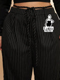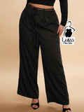 Calça Pantalona Listrada Cós Elástico Ajustável Plus Size