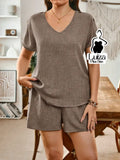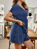 Conjunto Blusa Decote V Short Botões Laterais Plus Size