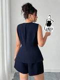 Conjunto Colete Alfaiataria Sem Mangas Short Elegante Plus Size