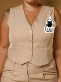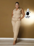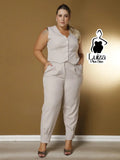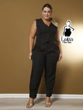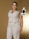 Conjunto Colete Botões Calça Jogger Casual Elegante Plus Size