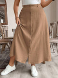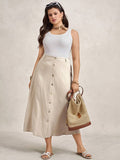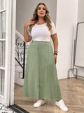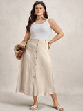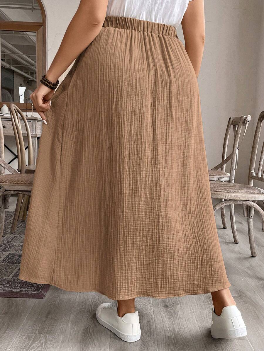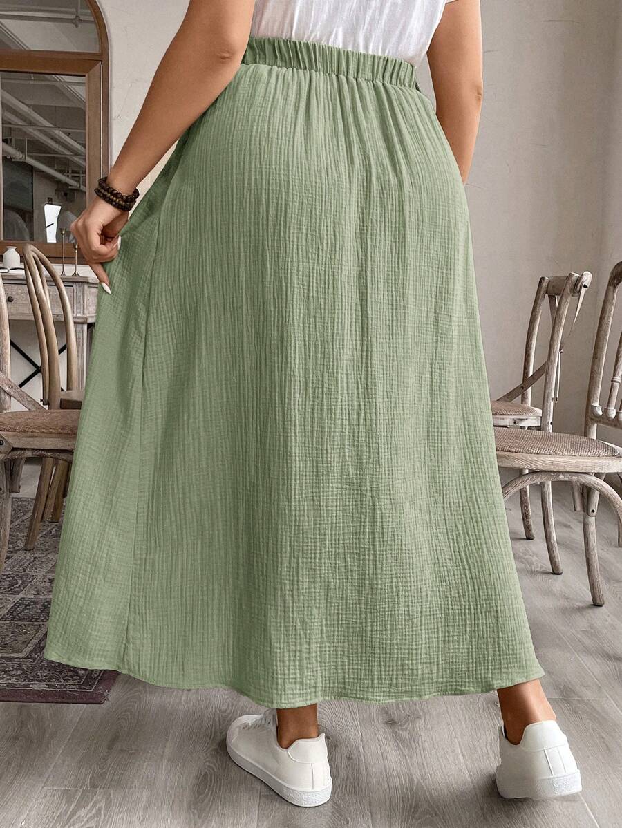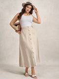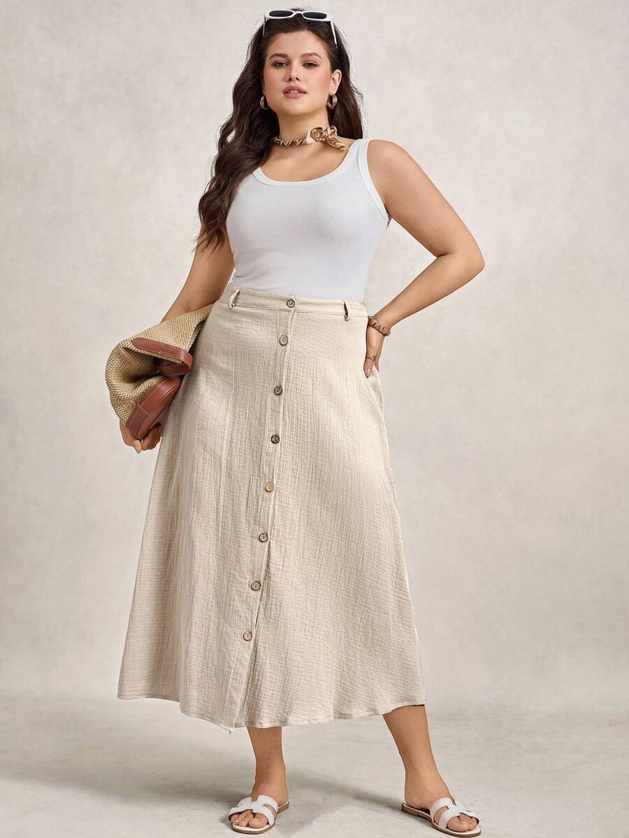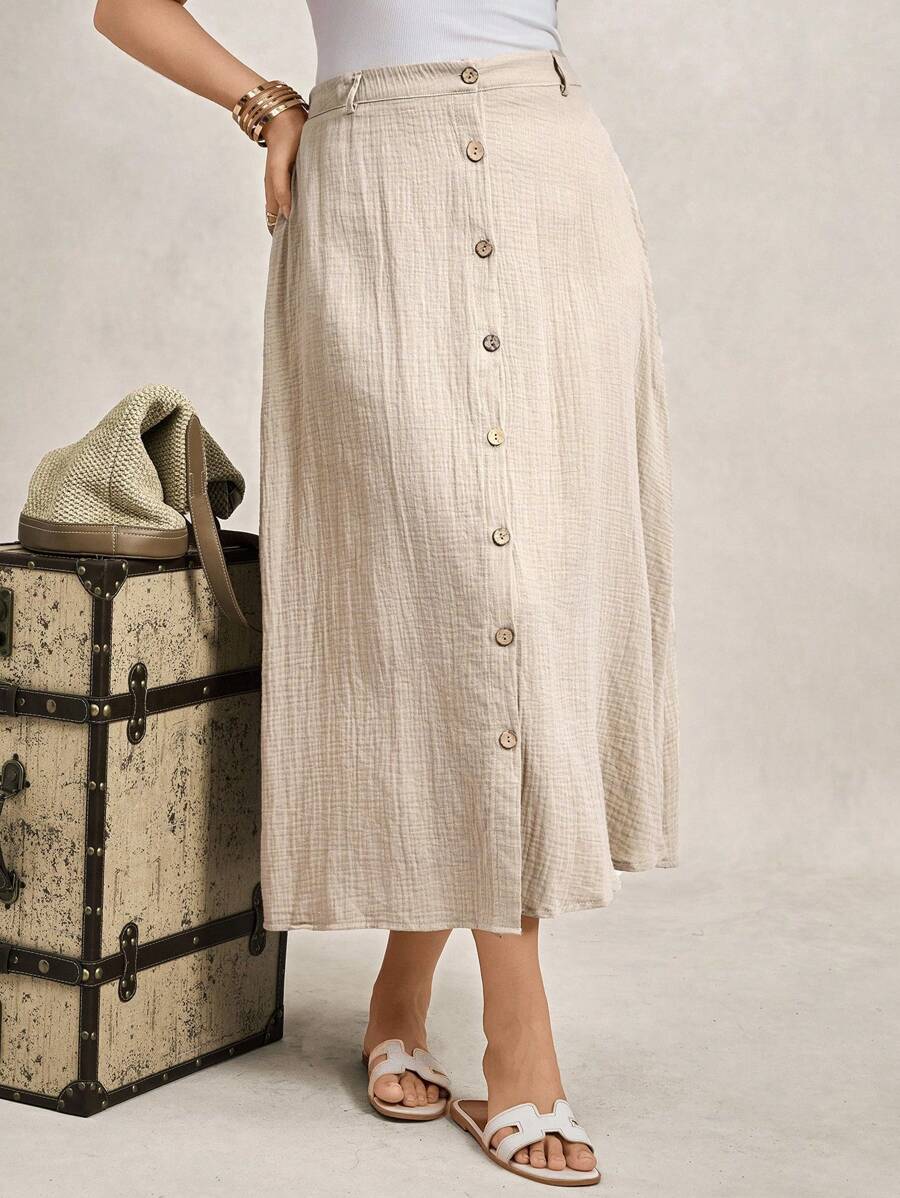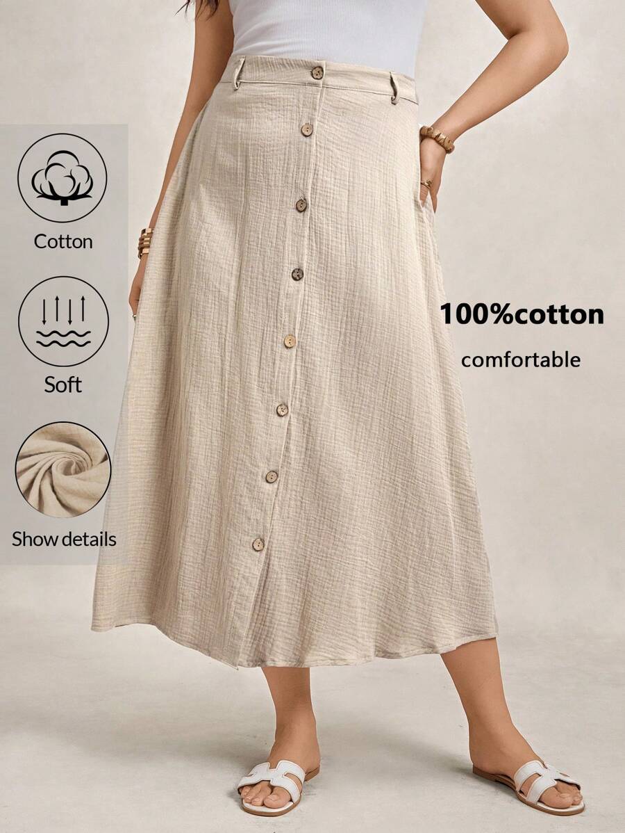 Saia Feminina de Algodão Comprimento Médio com Botões - Rossela. Plus Size