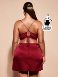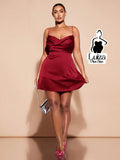 Vestido Curto Alças Finas Decote Drapeado Plus Size