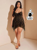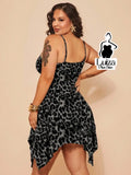 Vestido Curto Animal Print Alças Finas Barra Irregular Plus Size