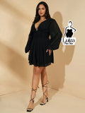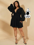 Vestido Curto Chiffon Manga Longa Decote V Plus Size