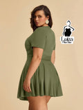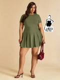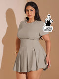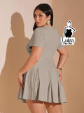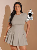 Vestido Curto Godê Plissado Manga Curta Plus Size