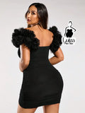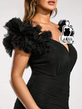Vestido Curto Justo Manga Bufante Decote Profundo Plus Size