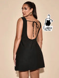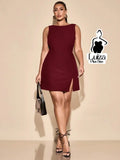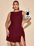 Vestido Curto Minimalista Sem Mangas Fenda Lateral Plus Size