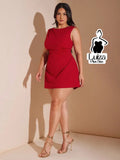 Vestido Curto Reto Sem Mangas Recorte Na Cintura Plus Size