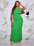 Vestido Longo Ajustado Sem Mangas Decote Redondo Plus Size