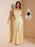 Vestido Longo Cetim Um Ombro Só Costas Abertas Plus Size