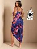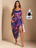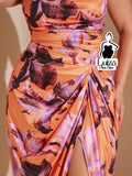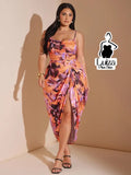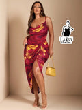 Vestido Longo Estampado Fenda Decote Drapeado Plus Size