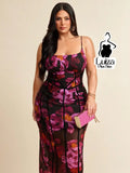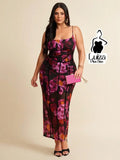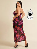 Vestido Longo Estampado Floral Recortes Transparência Plus Size