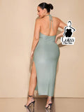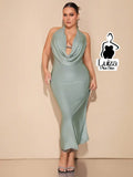Vestido Longo Frente Única Decote Drapeado Profundo Plus Size