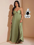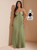 Vestido Longo Plissado Busto Torcido Costas Abertas Plus Size