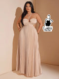 Vestido Longo Plissado Recortes Costas Abertas Plus Size