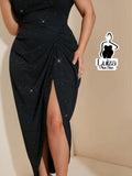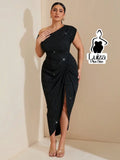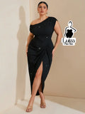 Vestido Longo Um Ombro Brilho Fenda Sofisticado Plus Size