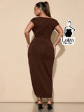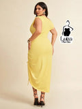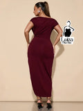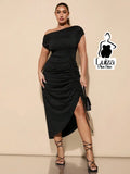 Vestido Longo Um Ombro Drapeado Fenda Sofisticado Plus Size