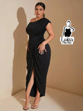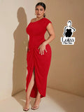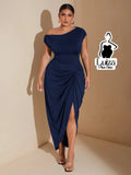 Vestido Longo Um Ombro Fenda Sofisticado Plus Size
