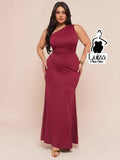 Vestido Longo Um Ombro Só Costas Abertas Amarração Plus Size