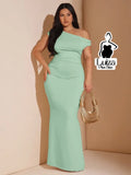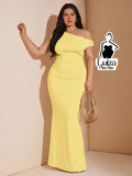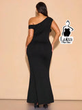 Vestido Longo Um Ombro Só Detalhe Assimétrico Plus Size