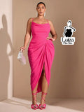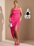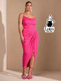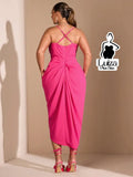 Vestido Midi Decote Drapeado Fenda Frontal Elegante Plus Size