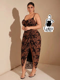 Vestido Midi Estampado Drapeado Fenda Frontal Plus Size
