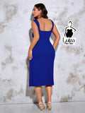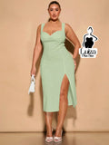 Vestido Midi Fenda Lateral Alças Largas Elegante Plus Size