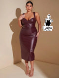 Vestido Midi Justo Alças Largas Sintético Plus Size