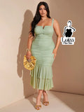 Vestido Midi Justo Detalhe Drapeado Saia Plissada Plus Size