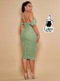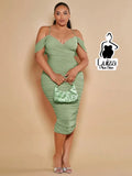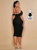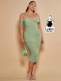 Vestido Midi Justo Ombro Caído Decote Elegante Plus Size