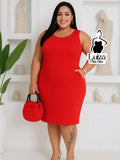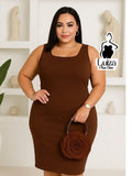 Vestido Midi Justo Sem Mangas Decote Quadrado Plus Size